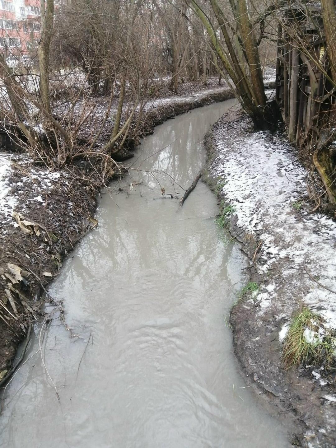 Ручей Быстрец в Рязани приобрел серый окрас. Информация появилась в группе «Мое Кальное».