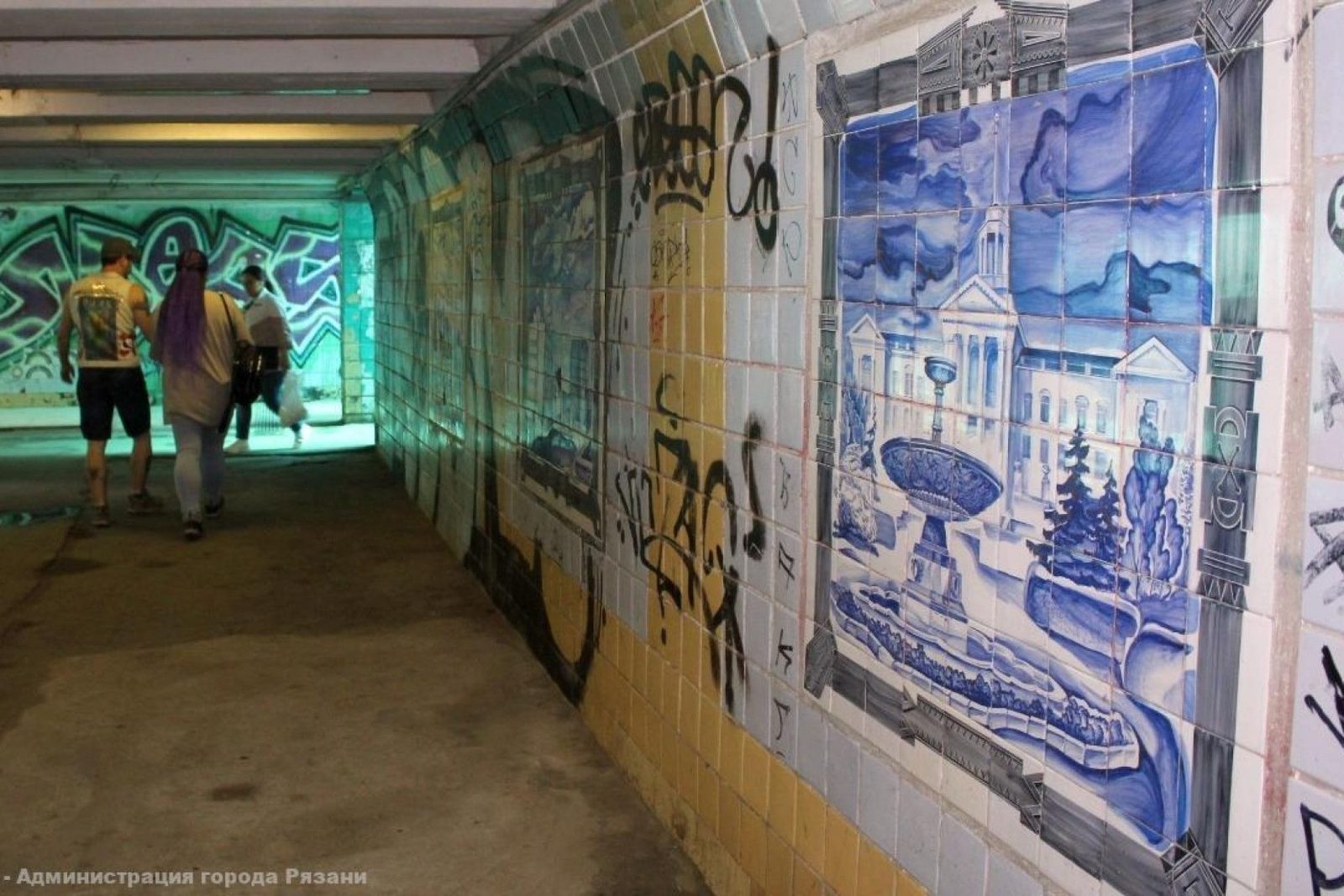 12 панно из керамической плитки на время работ закроют фанерой, затем их очистят, укрепят, восполнят недостающие детали и обрамят алюминиевым профилем по периметру.
