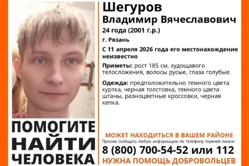 Поисково-спасательный отряд «ЛизаАлерт» информирует о начале поисковых мероприятий в Рязани, направленных на установление местонахождения 24-летнего Владимира Шегурова. Молодой человек перестал выходить на связь 11 апреля, что стало причиной для обращения в добровольческую организацию.