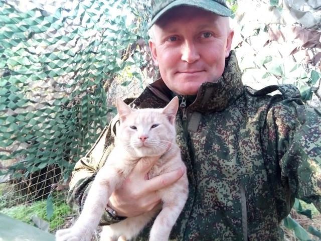 Подполковник ВДВ Александр Шерин направился в зону СВО, командовать полком.На боевой позиции его ждал верный товарищ — кот Жирик, с которым Шерин не расстается с декабря 2022 года.