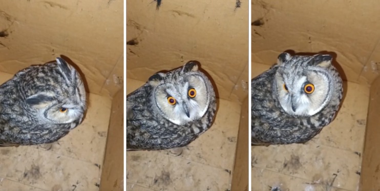 Рязанцы спасли ушастую сову, которую чуть не заклевали вороны. Об этом сообщили в Telegram-канале «Топор 18+ Рязань».