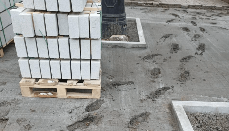 Работы стартовали на минувшей неделе возле фабрики «Рязаньинвест». Рабочие залили бетоном площадку на тротуаре, но ограждение не поставили.